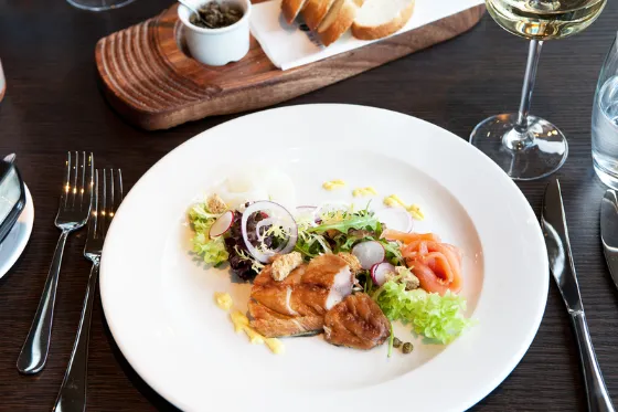 Bij een reservering kun je aangeven dat je met een Dinerbon wilt afrekenen. Tijdens het betalen wordt het saldo van de bon verrekend met de rekening. Is het bedrag hoger dan het beschikbare saldo, dan betaal je het verschil gemakkelijk bij.